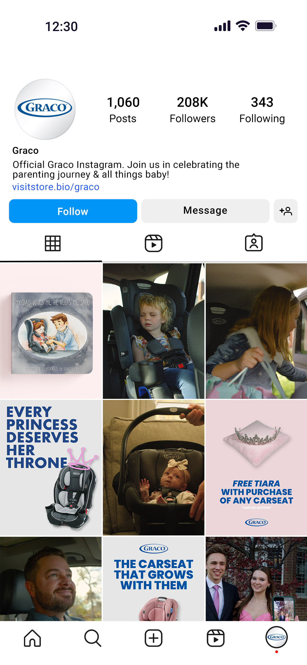 The Graco brand will get an Instagram redesign, focused on our message. Additional products will be sold with the carseats, including a Graco story book titled "My Dad Loves Me, He Keeps Me Safe."